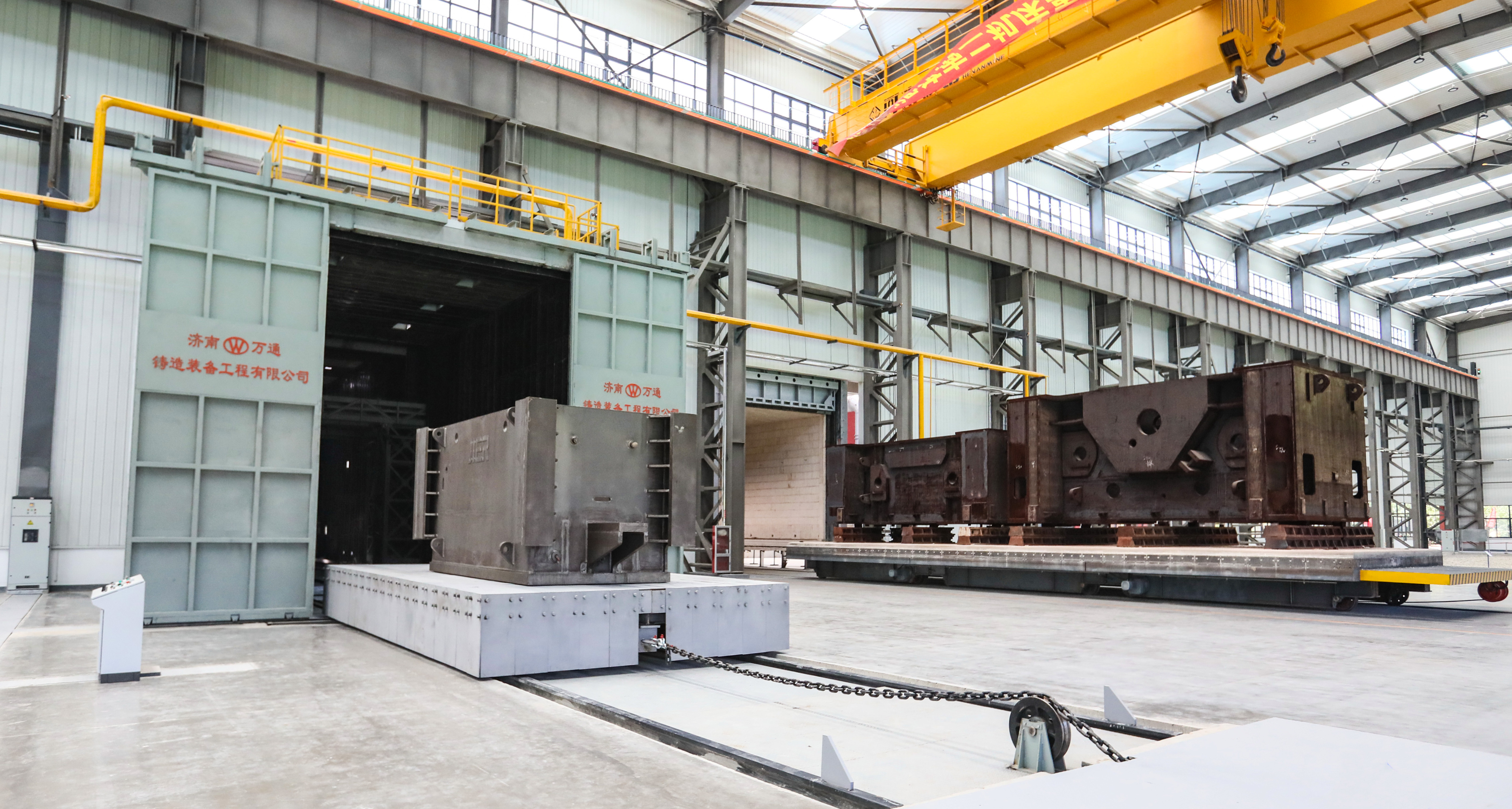 最后,參加儀式的領(lǐng)導(dǎo)共同點(diǎn)亮啟動(dòng)球。承載著第一批完工零件的臺(tái)車從拋丸室和時(shí)效爐中緩緩開出,標(biāo)志著E車間正式投產(chǎn)。